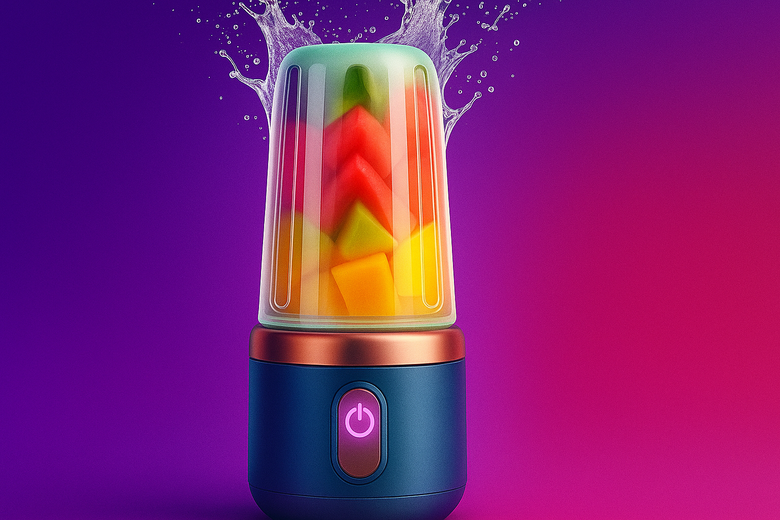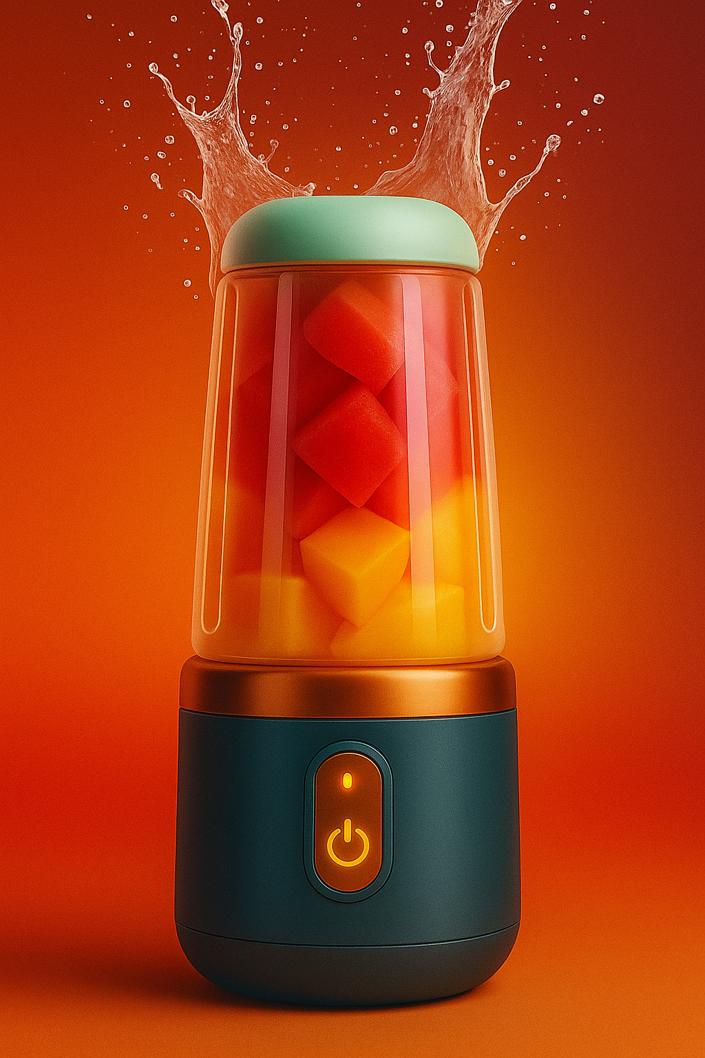 This portable juicer is designed to help you create smooth, flavorful drinks wherever life takes you. With its powerful blades and compact build, you can blend fruits directly into a ready-to-go cup in just seconds. The spill-resistant travel cup lets you take your juice or smoothie with you effortlessly—perfect for work, gym, or outdoor activities. Fresh ingredients, vibrant colors, and instant convenience all come together for a healthier daily routine.